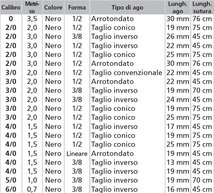 Multifilamento seta nera intrecciata rivestita con cera/silicone. Chirurgia generale, oftalmica, cardiovascolare, gastrointestinale, ortopedica. conf. 12 pezzi.