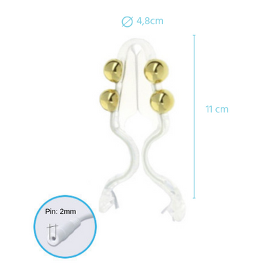 I quattro elettrodi sono rivestiti in oro e privi di nichel, garantiscono una migliore conduttività elettrica e rappresentano la soluzione ideale per le persone allergiche. Orientati con un angolo di 45 gradi verso il basso, consentono un contatto ottimale con i muscoli corrispondenti e, lavorando su due canali separati, garantiscono la possibilità di un trattamento asimmetrico contemporaneo dei due lati particolarmente vantaggioso in presenza di esiti cicatriziali da episiotomia.