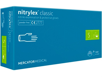 Guanti da visita in nitrile, monouso, non sterili, senza polvere. Superficie esterna: punta dita texturizzata. Polsino: bordato.
